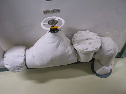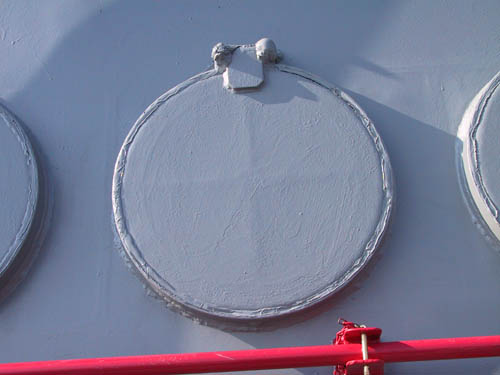 壁面アート:航行中、他の艦から物資の補給を受ける際、滑車やクレーンをセットするためのものです。